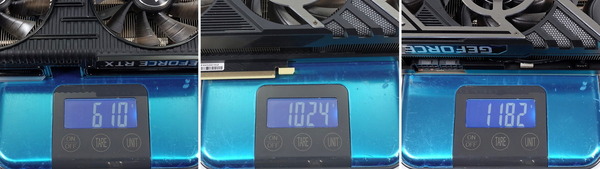なおグラフィックボードの重量はPalit GeForce RTX 3070 GamingPro OCが1182gに対して、Palit GeForce RTX 3080 GamingProが1182gに対して、Palit GeForce RTX 3060 Ti Dualは610gでした。