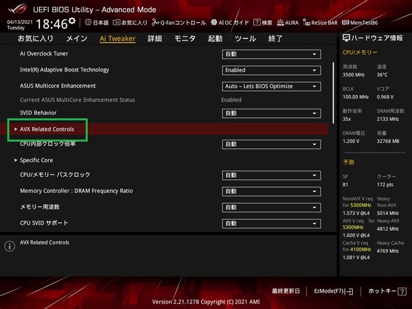 6.ASUS ROG STRIX Z590-I GAMING WIFIのOC設定について