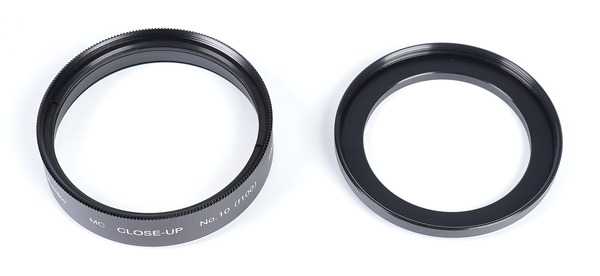 そこでMARUMIから発売されている、フィルター径の変換アダプタ「ステップアップリング 40.5mm →49mm」を一緒に購入しました。変換前後のサイズ組み合わせは色々あるので「Kenko MCクローズアップレンズ No.10」を使ってみたいけど対応サイズがないということであれば探してみてください。