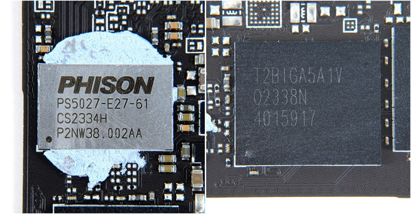 「Nextorage NEM-PAB」のメモリコントローラーは公表されていませんが、TSMC製12nmプロセスで製造される最新のPHISON製DRAMキャッシュレスコントローラー PS5027-E27Tです。