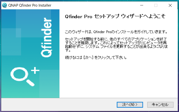 QNAP TBS-464の初期設定を行うため、まずはWindows PCへ「QNAP Qfinder Pro」をインストールします。「QNAP Qfinder Pro」のインストール自体は、サポートページからダウンロードしたインストーラーを起動し、ポチポチとクリックしていくだけです。