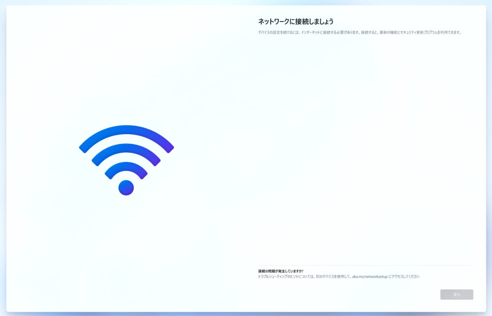 正確に言うとWindows 11 Homeでは初期設定でインターネット接続が必須ですが、Windows 11 Proはインターネット接続がなくても初期設定を進められます。