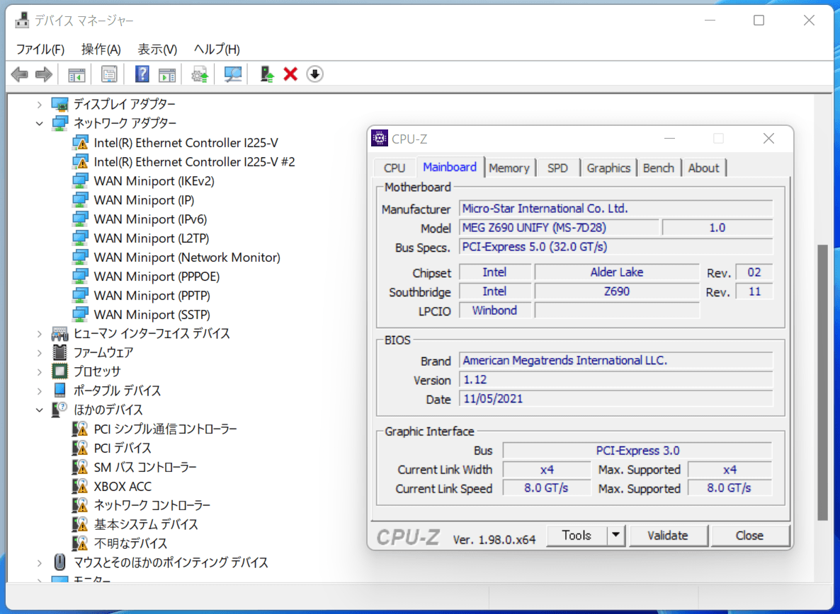 一例として、Intel製2.5Gb有線LANコントローラーI225-V(Foxville)は、基本的にWindows 11の標準ドライバで動作するはずですが、一部のマザーボードではエラーが出て正常に動作しないケースも確認しています。