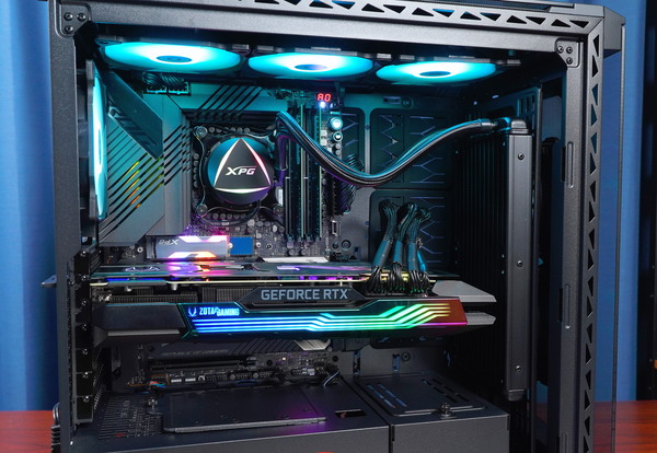 以下、今回作成したゲーミングPCのビルドギャラリーです。ARGB LEDイルミネーションに対応したXPG製PCパーツを組み合わせれば、ゲーミングPCを鮮やかにライトアップできます。