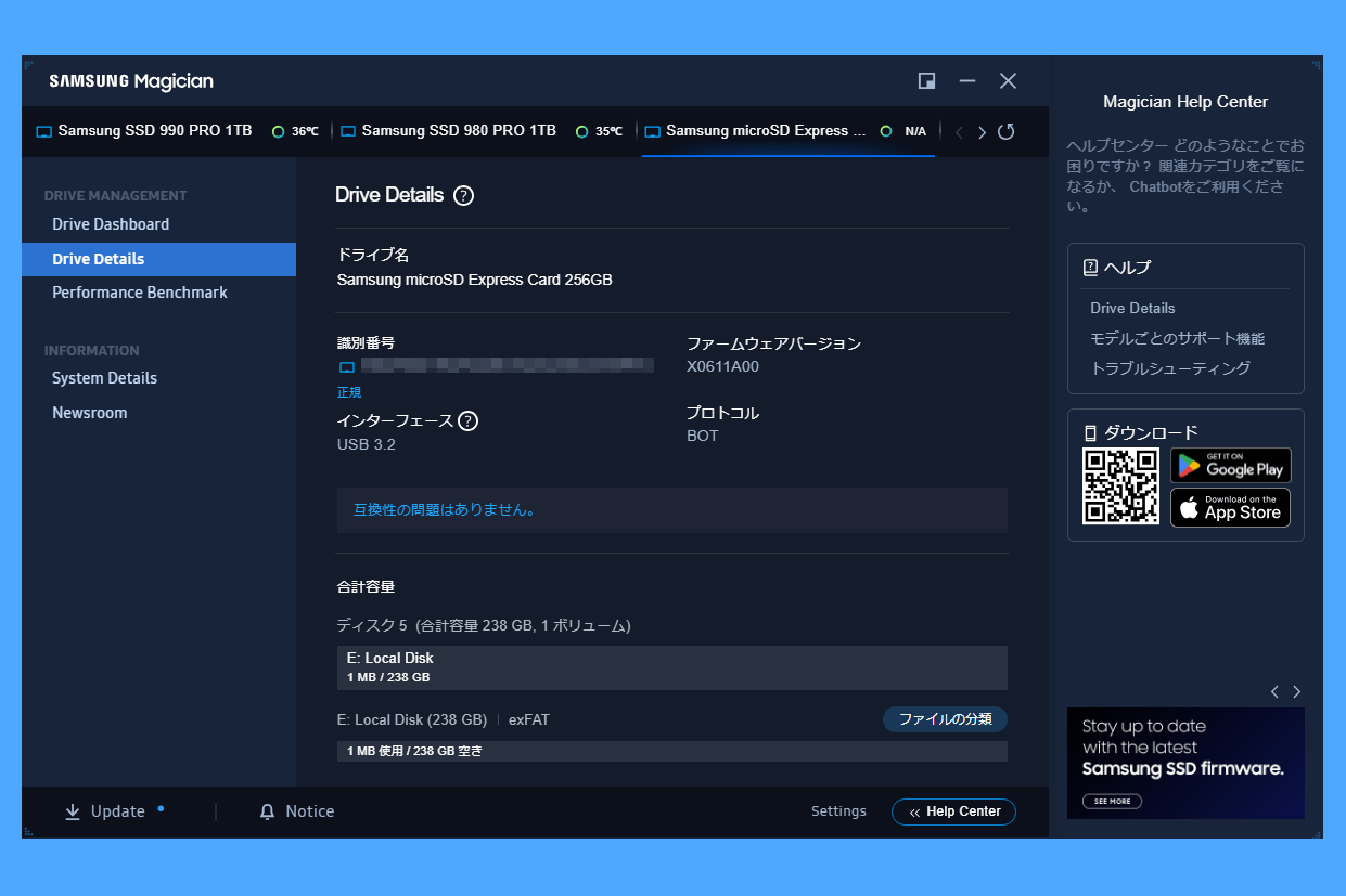 確認したところ、Samsungの市販のSSDやメモリーカード製品を取り扱う国内代理店 ITGマーケティングのサイトに記載されている、Samsung公式サポートセンターの窓口に問い合わせてくださいとのことです。