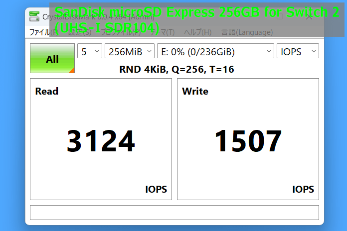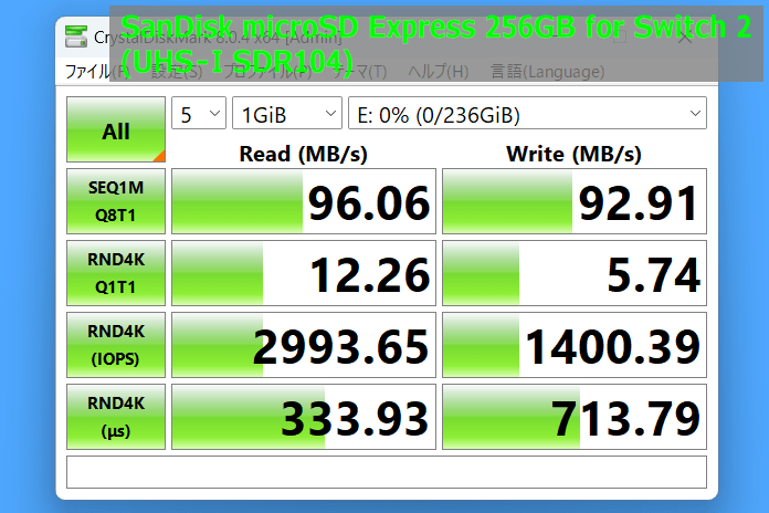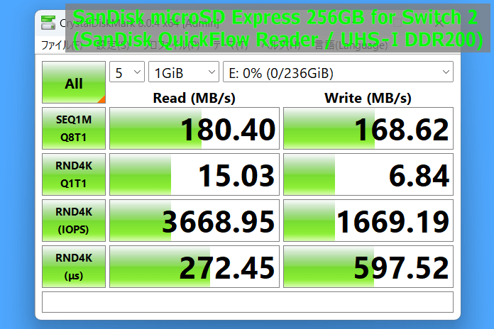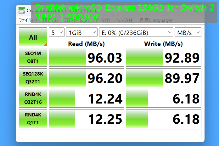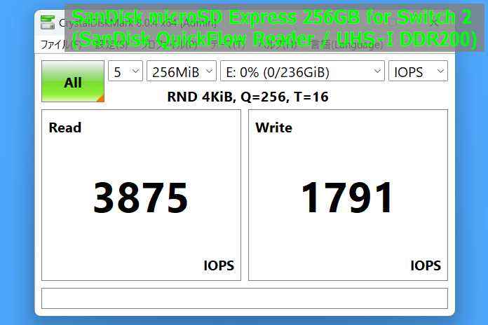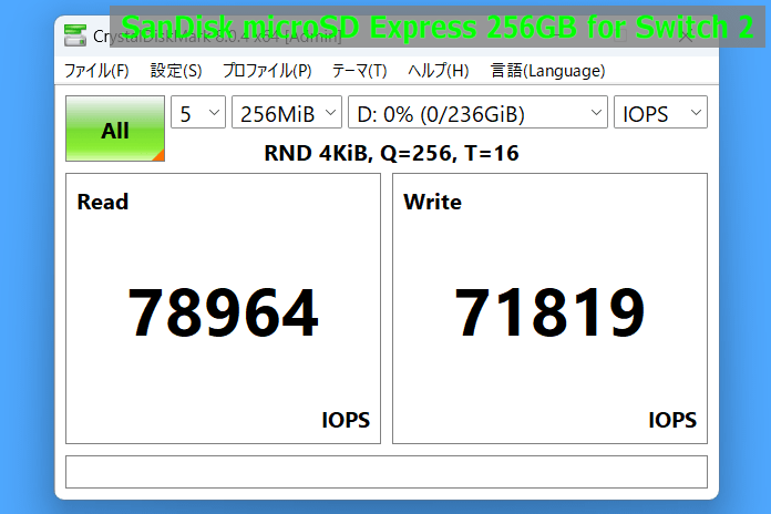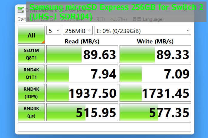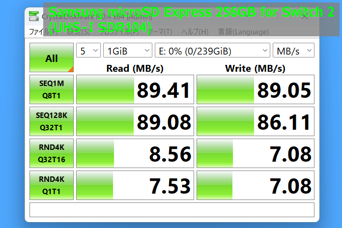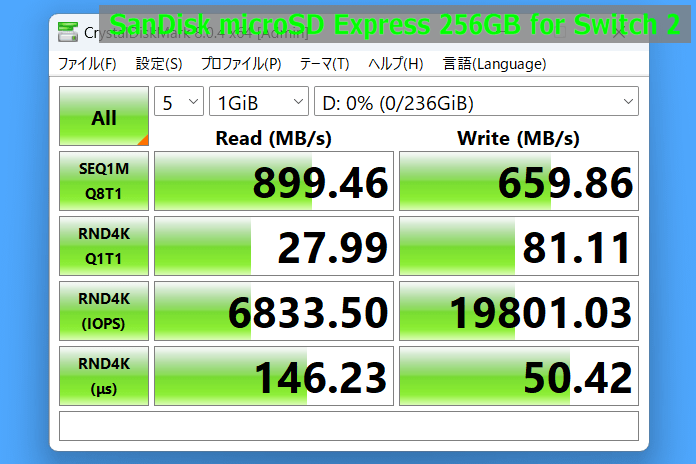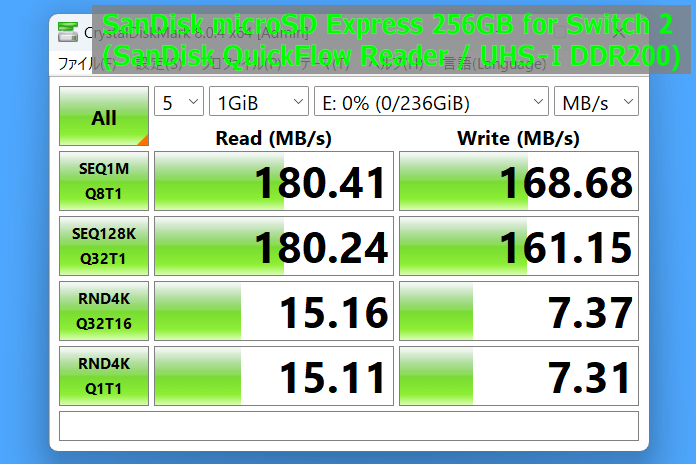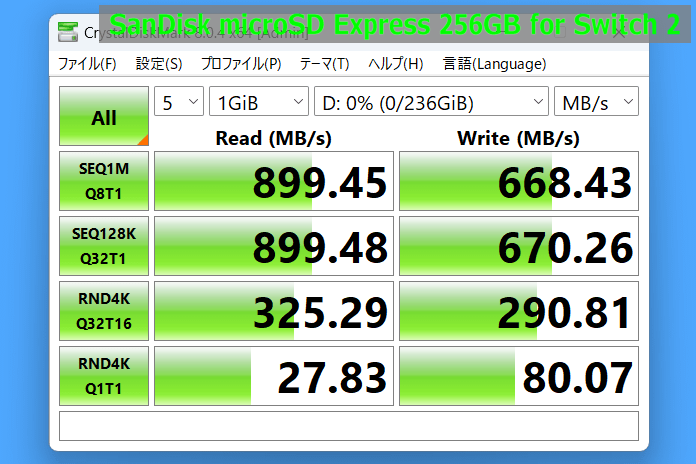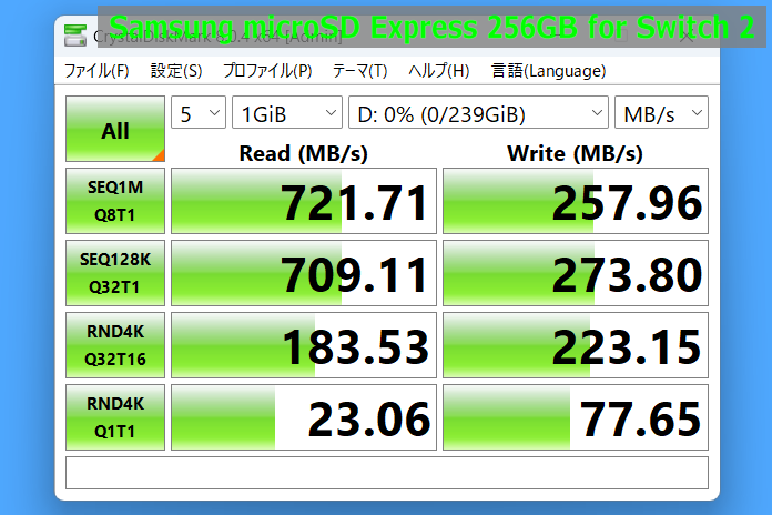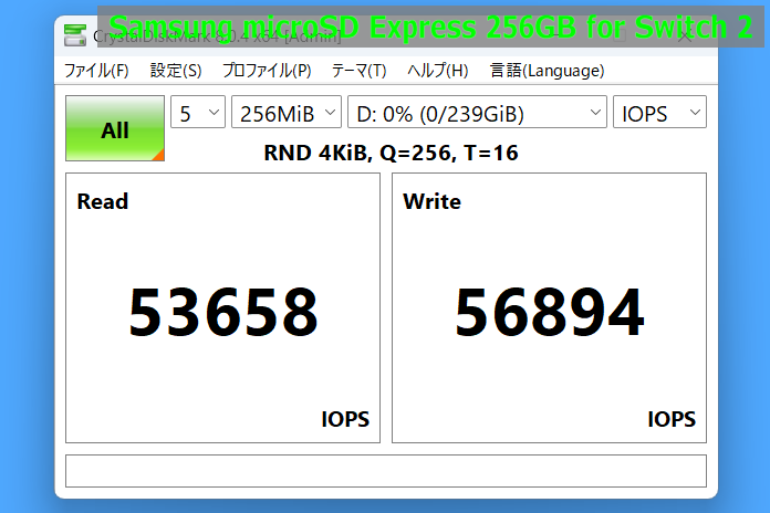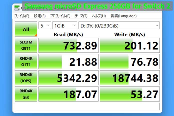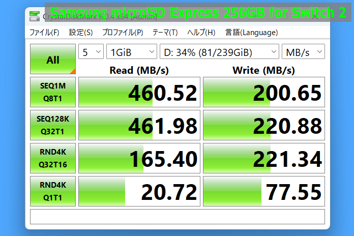 「SanDisk / Samsung microSD Express Card 256GB for Nintendo Switch 2」をSwitch 2の増設ストレージとして使用した時の性能を比較検証します。