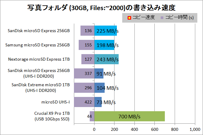 - コピー速度は主にカメラやスマホで使う場合の性能差