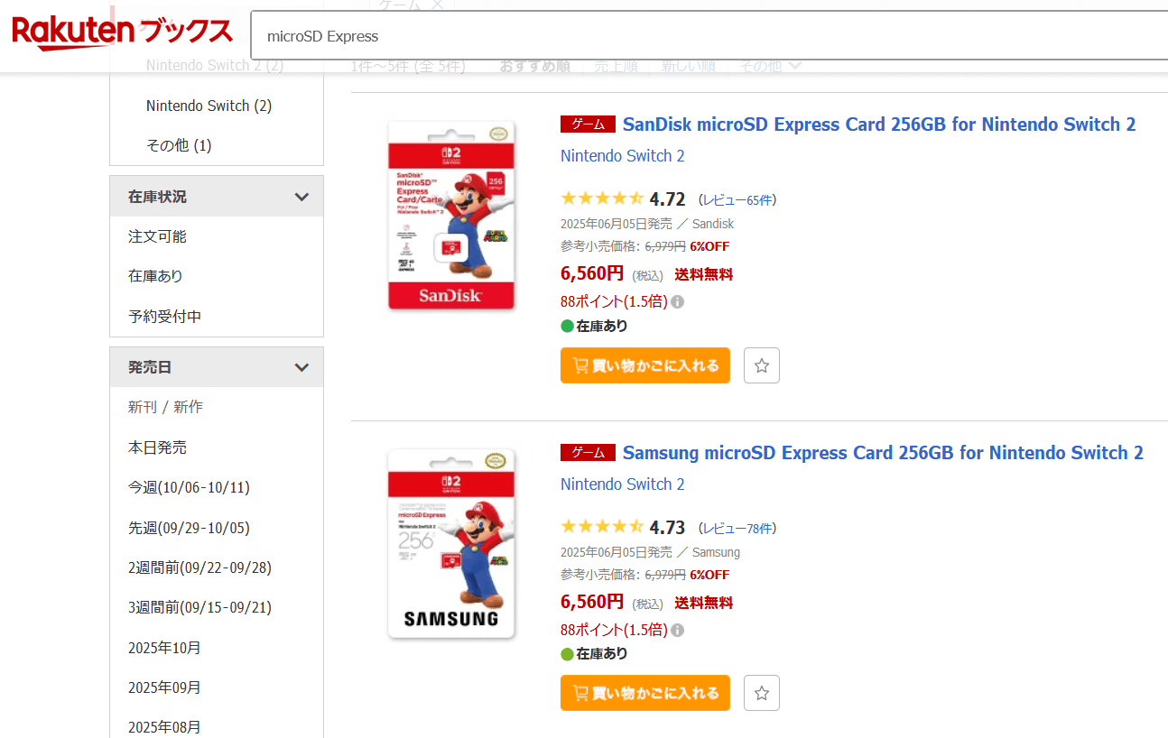 SanDiskからは同社市販モデルのmicroSD Expressカードが発売済みとなっており、任天堂ライセンス商品も市販モデルの256GB版の仕様に準ずると思われます。