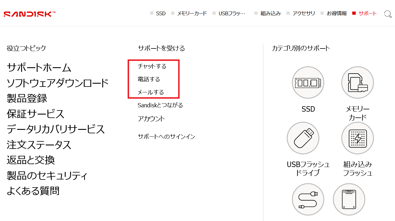 購入から結構時間が経過していて、保証期間内の場合はSanDiskやSamsungのメーカーサポートページに問い合わせます。