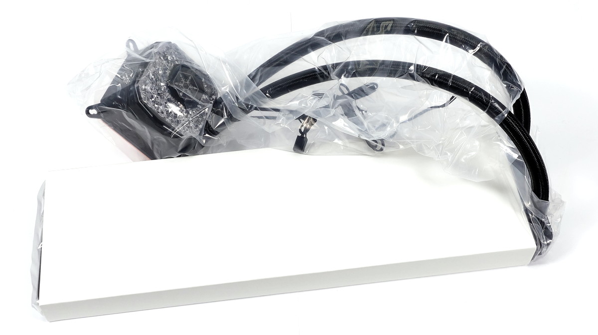 簡易水冷CPUクーラー本体は水冷ヘッドとラジエーター共にビニール袋に包まれています。