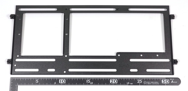 最後に紹介するのは「SilverStone SUGO 14」における最大のファン・ラジエーター設置スペース、拡張ブラケットです。拡張ブラケットには上の章で解説した3.5インチストレージや5インチ拡張デバイスだけでなく、各種サイズのファン・ラジエーターを設置できます。