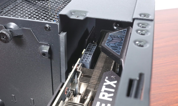 横置き・縦置きのどちらでも重量級の超大型グラフィックボードを適切に支えることが可能な、可変グラフフィックスカードホルダーを標準搭載しているところもユーザーフレンドリーです。