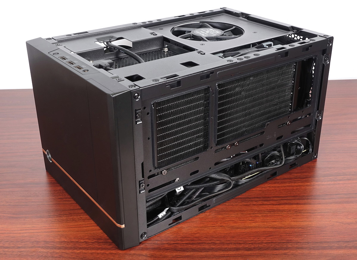 以上で「SilverStone SUGO 14」の組み立ての難しいところは一通り完了です。あとは必要に応じて天面ファンマウントプレートで120mmファンを設置し、最後に上下左右の4面パネルを装着したら出来上がりです。