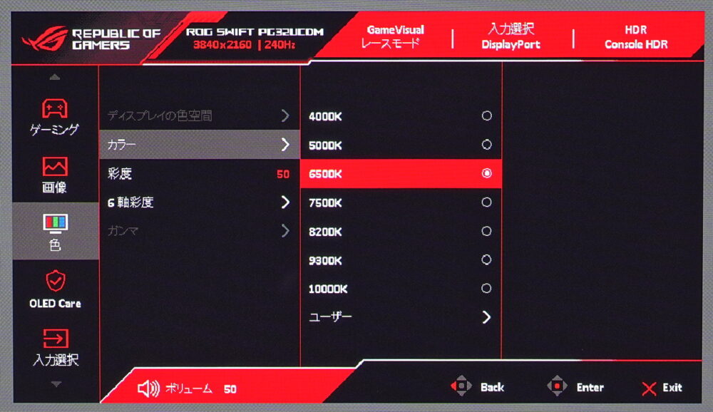 ちなみにASUSから発売されている有機ELゲーミングモニタはHDR表示でも、色温度や彩度の調整が可能です。詳細レビューも公開しているので気になる人は参照してみてください。