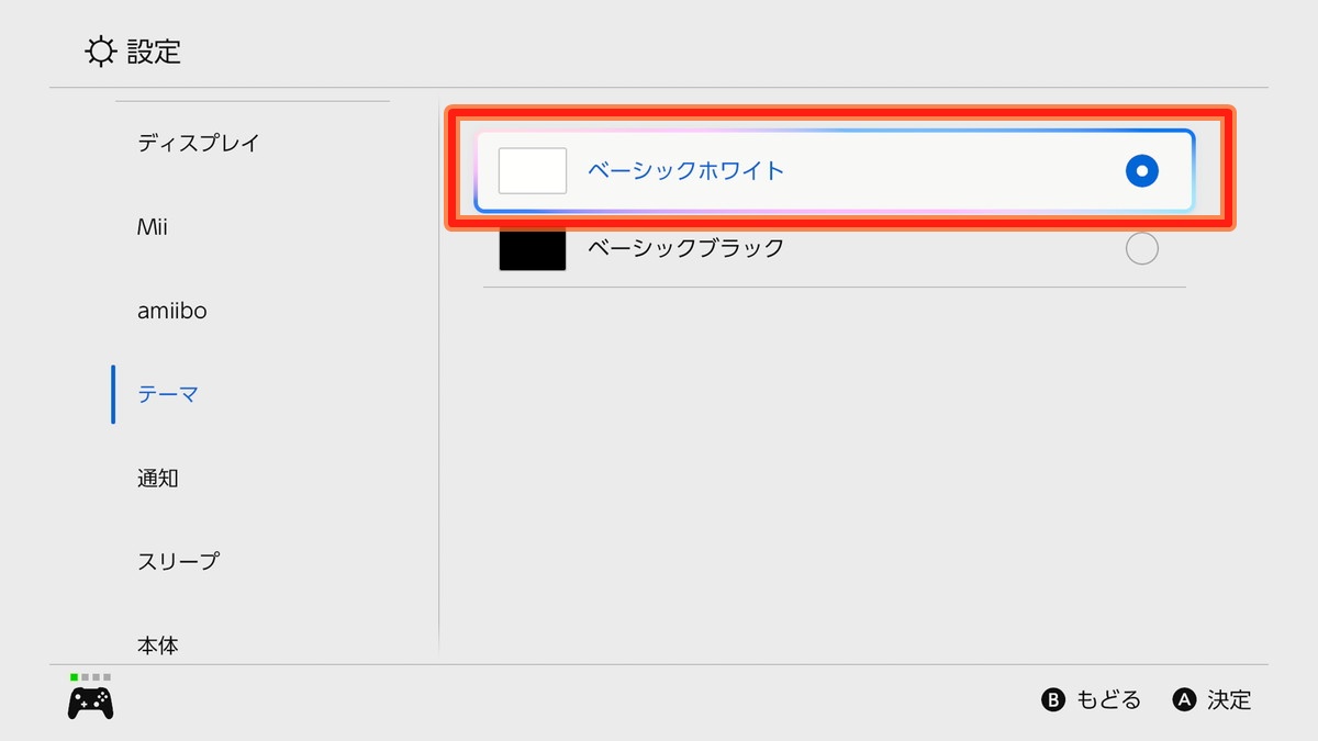 調整時のテーマはベーシックホワイトにしておいてください。調整が終わったらブラックに戻しても問題ありません。