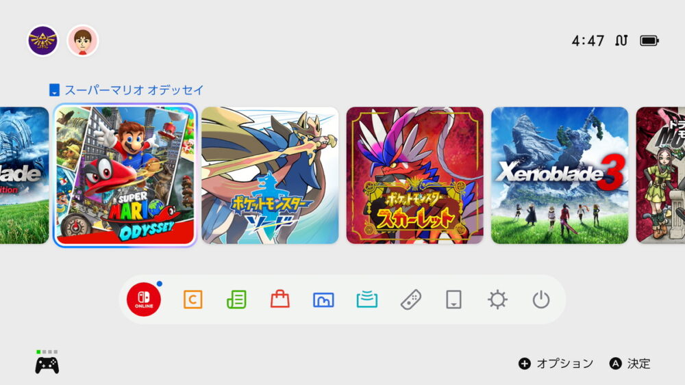 Switch 2をテレビ・PCモニタに繋いでSDRモードでホーム画面を表示します。