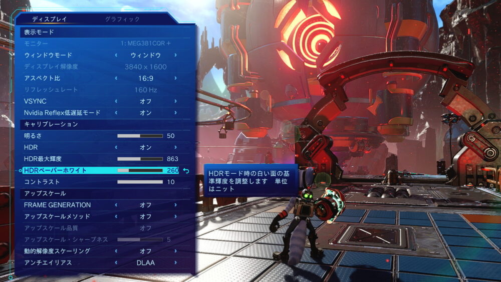 Windows OSでHDRを有効化した時の「SDRコンテンツの明るさ」の設定がまさに同じものです。PCゲームだとラチェット&クランク パラレル・トラブルやモンスターハンター ワイルズにもHDRペーパーホワイトの設定があります。