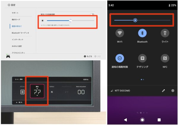 スマホ画面の明るさ調整や、PCゲーミングモニタの輝度設定とも同じと考えてOKです。