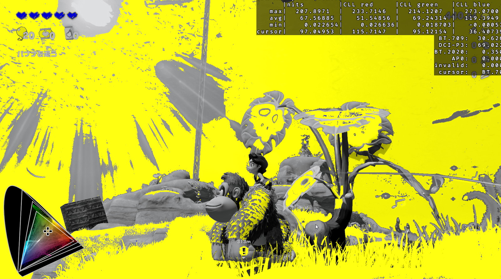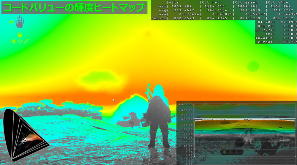 実はHDR対応ゲームでも広色域カラーを全く使っていないゲームがあります。というかかなり多いです。
