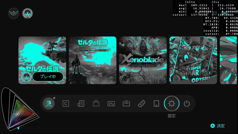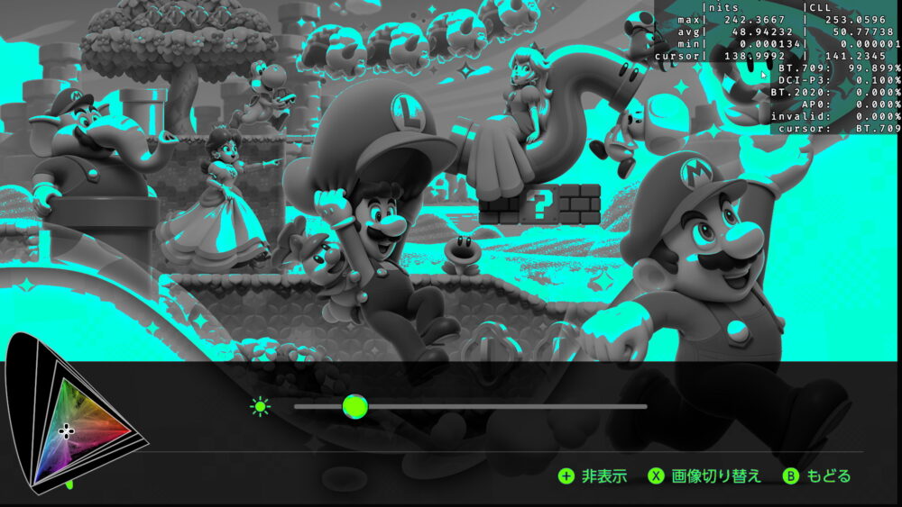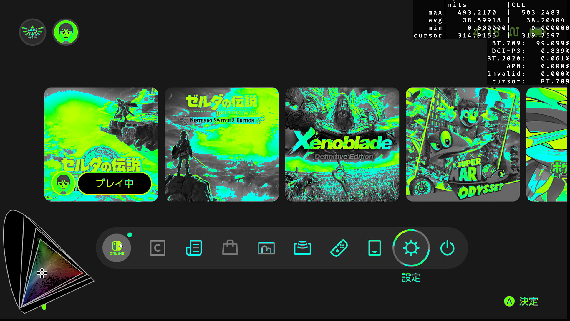 ちなみにSwitch 2の本体ディスプレイはSDRでもHDRでもDCI-P3の広色域カラーを使用することを確認済みです。(詳しくは後日公開の別記事で)
