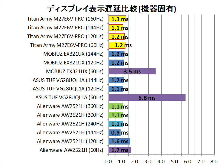 8.Titan Army M27E6V-PROの応答速度・表示遅延