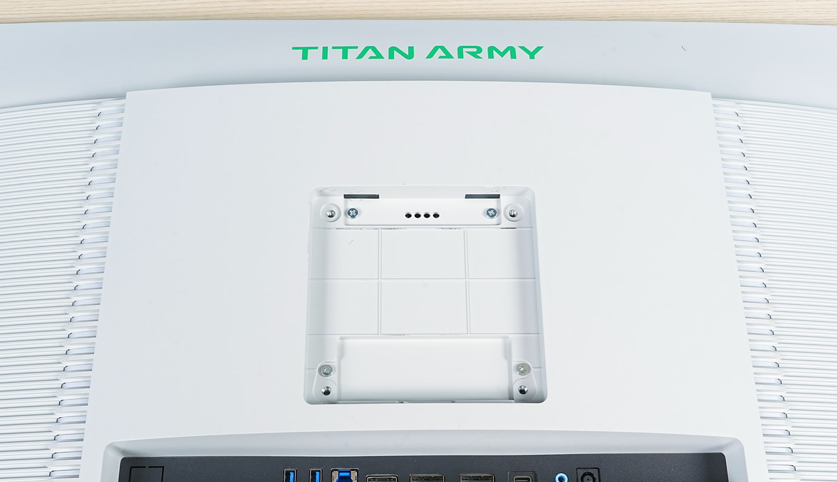 マイナーメーカー製のモニタは背面カバーのデザインや質感が安っぽくなりがちですが、「Titan Army M27E6V-PRO」はシルキーで滑らかな表面加工、少しグレーがかったホワイトで清潔感があり、大手メーカーのクリエイター向けモニタと言われても通用する感じです。