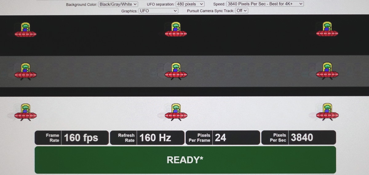 またバックライトの追従も改善されていて、最後の高速に動く小さな白円では、コマ送りで確認するとやはり1フレーム遅れはあるものの、白円が暗くならず点灯できています。