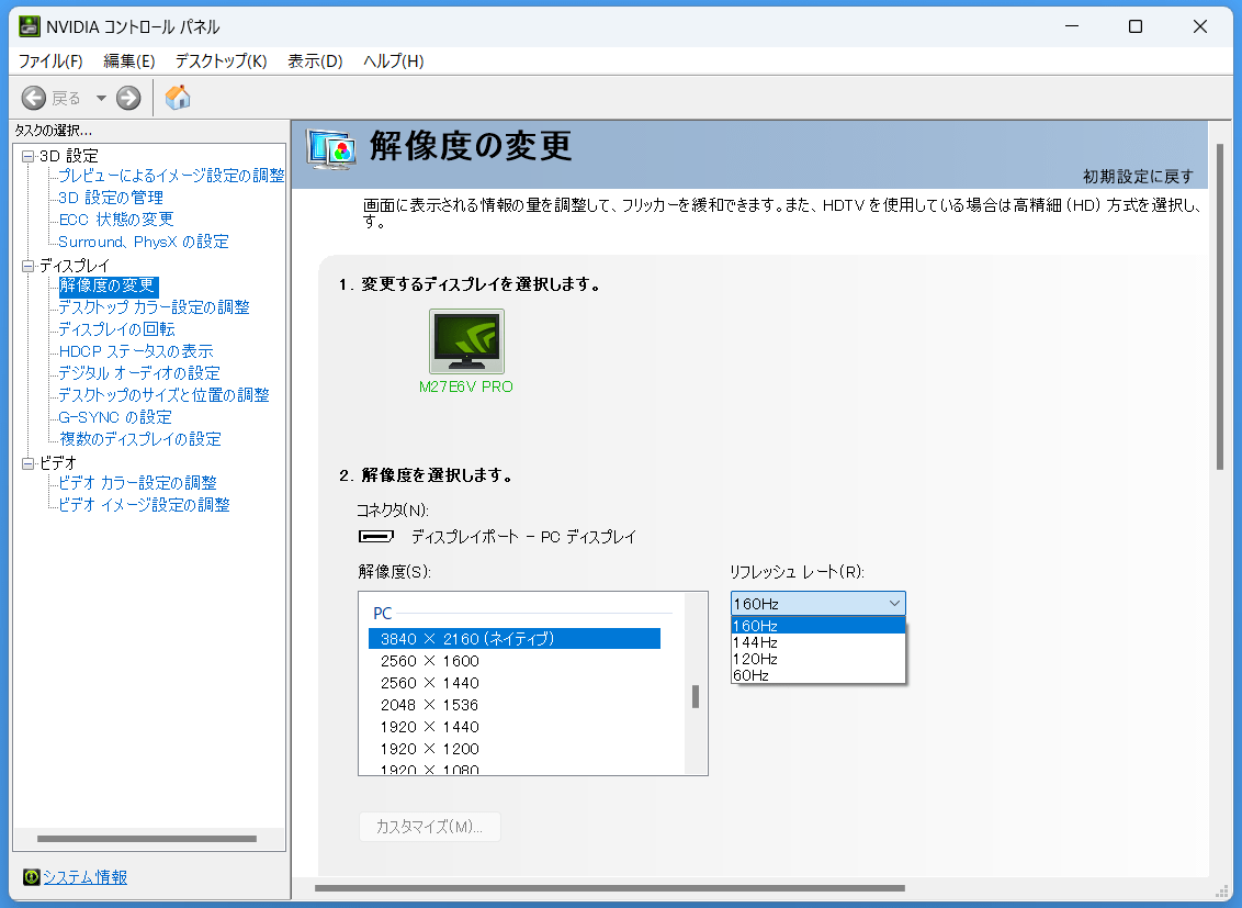 - DP1.4 DSCは4K/160Hz VRR/HDR 10bit RGBに対応