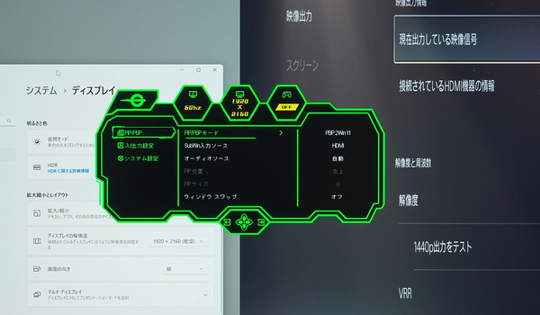 『オーバーレイする直下の3D映像が暗いとUIも暗くなる』というのはFALD対応液晶で一般的な弱点ですが、それ以外については、”プレイしていて気に障る”系の挙動は上手く抑制されています。
