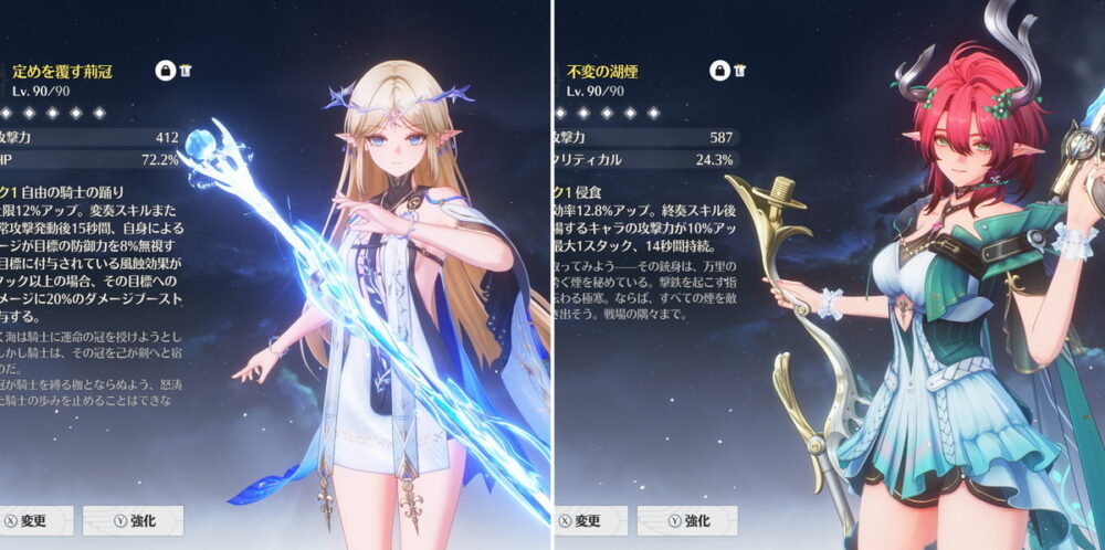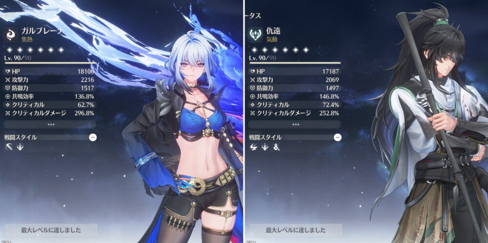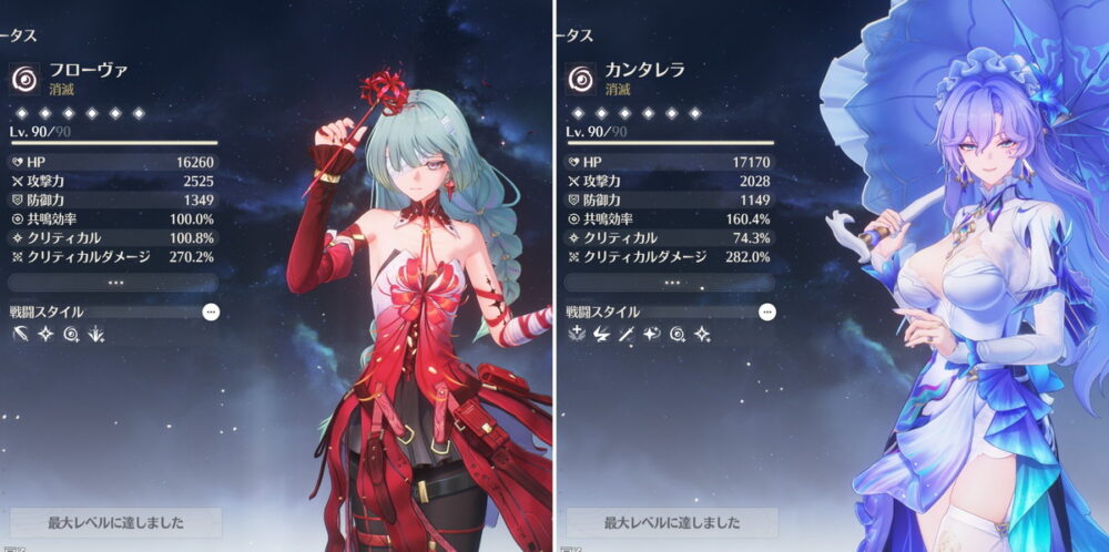 ただ、重撃ダメージを扱うメインアタッカーで「フローヴァ」や「ユーノ」といった重撃ダメージバフを持った強いキャラがいるので意外と最新環境でも通用します。