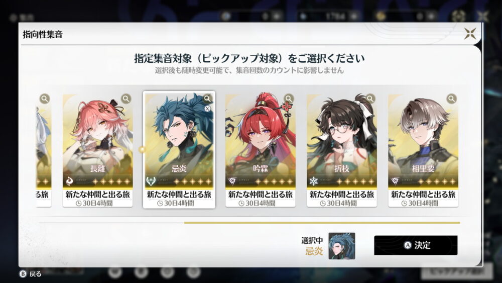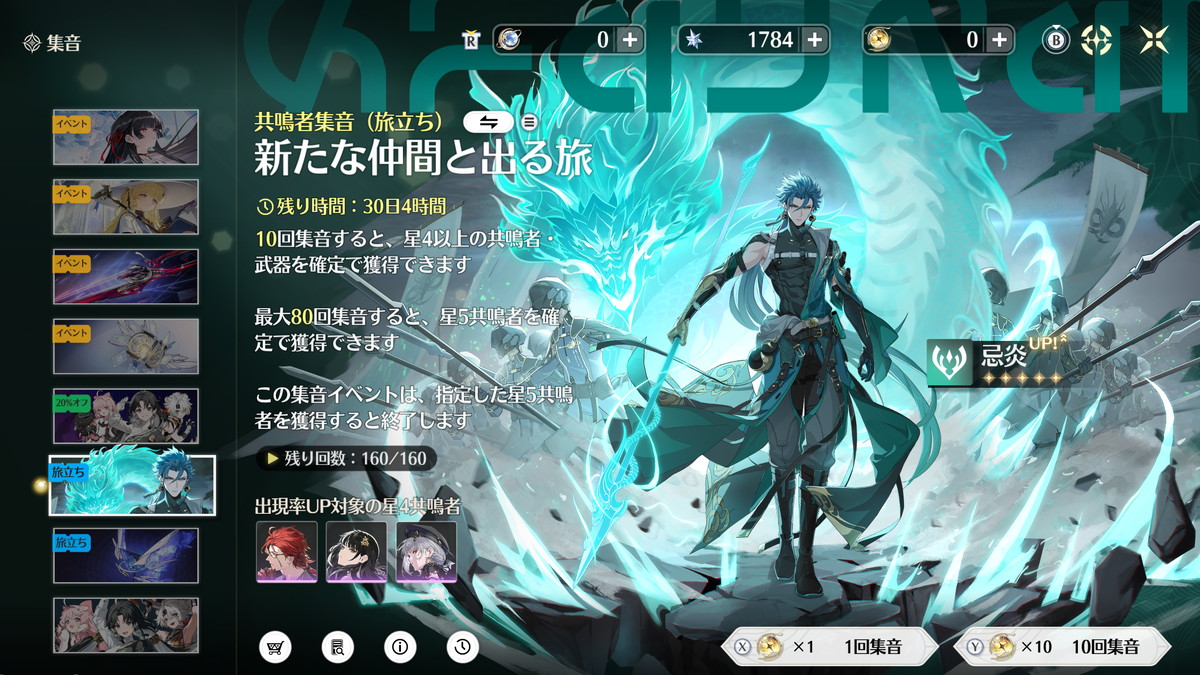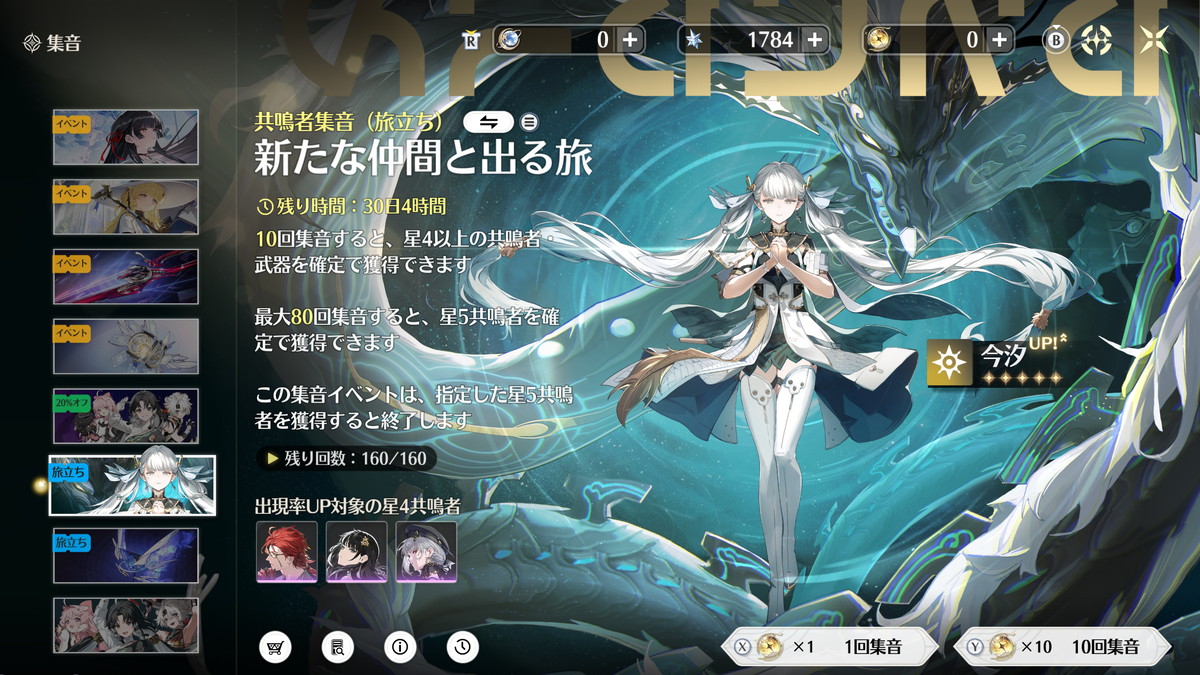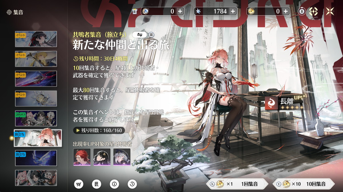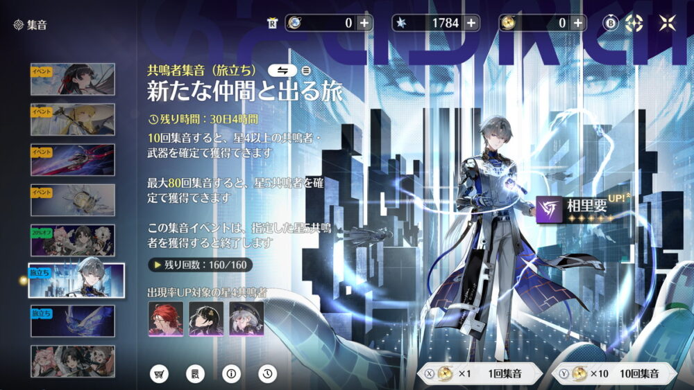 まず「相里要」と「吟霖」はセットで使うことが前提というくらいシナジーのあるキャラですが、旅立ち集音ではどちらか一方しか引けません。