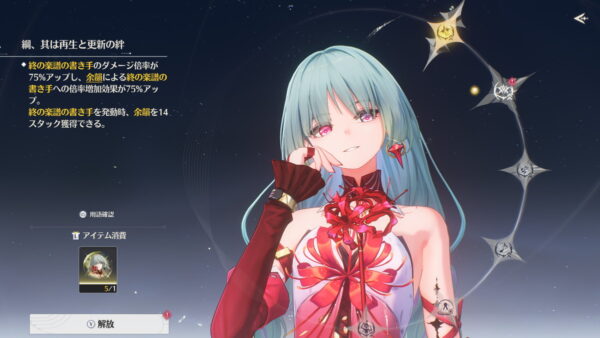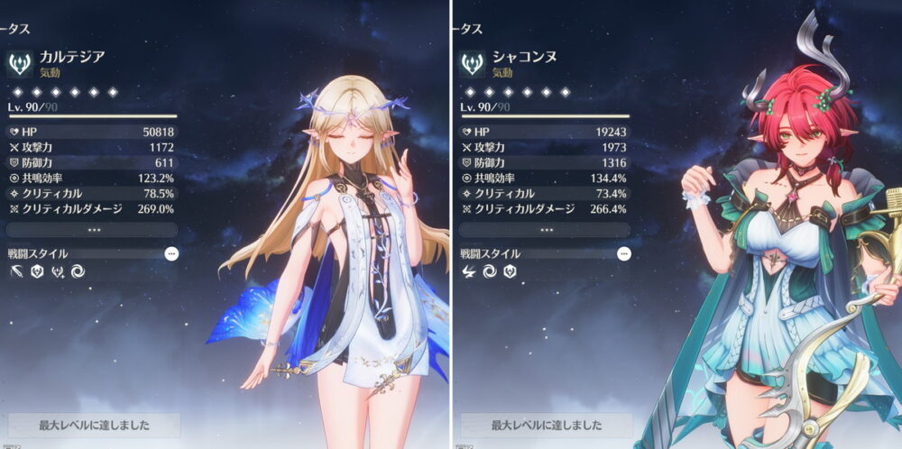 例えばユーノは無凸の場合、共鳴効率が130%~140%ないと共鳴開放始動のローテが回せない(1凸で緩和される)ので筆者は共鳴効率 137%で運用しています。