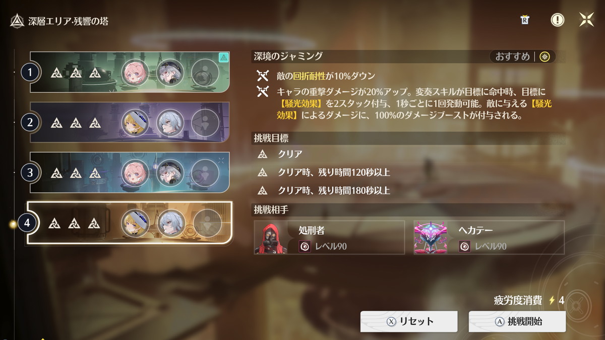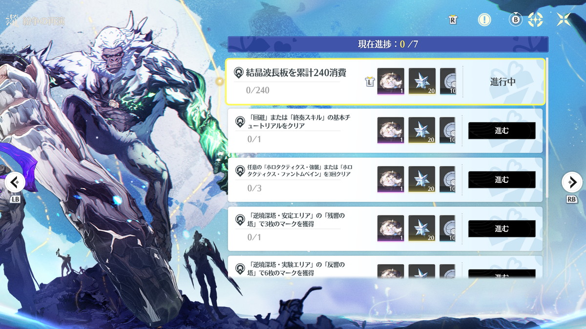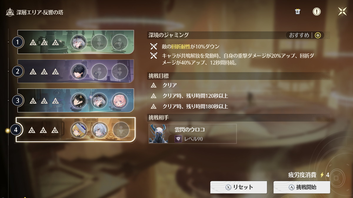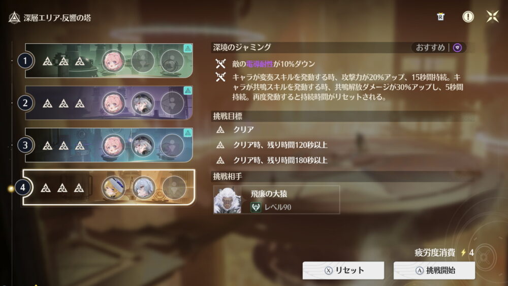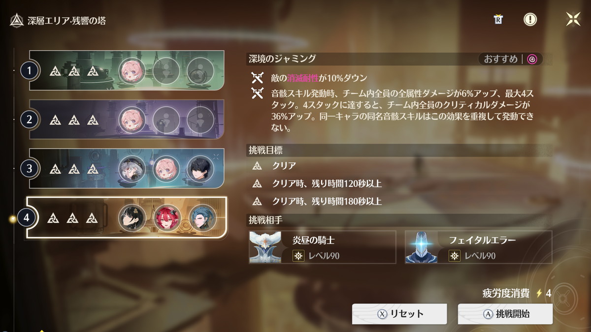 現在は高難度エンドコンテンツの1つ、逆境深塔のステージが2つ追加されたため、『無凸&モチ武器のメインアタッカーと無凸のサブアタッカー』が3セットくらいないと完全攻略が厳しいので、高難度エンドコンテンツの制覇はスムーズに進めて2ヵ月~3カ月だと思います。