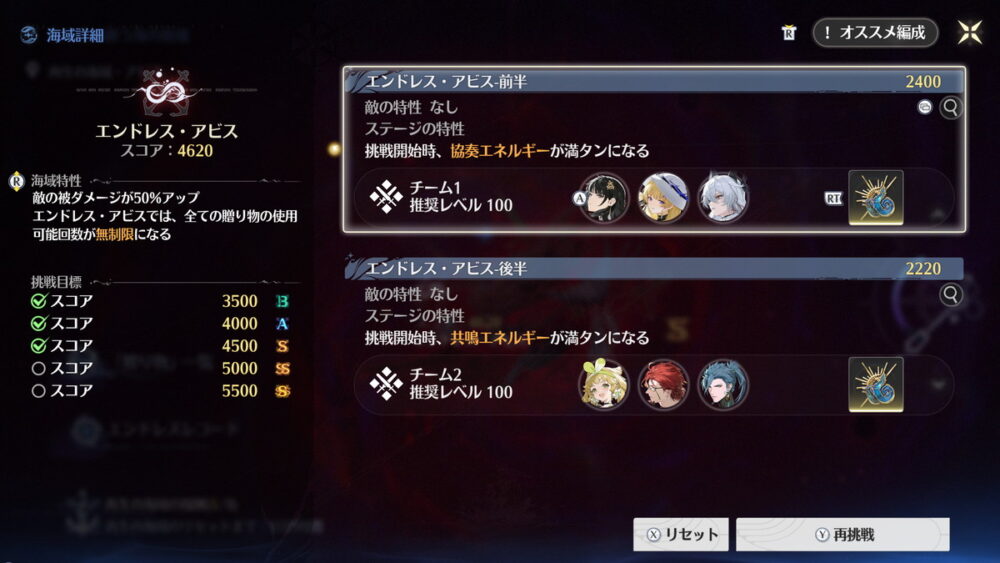 特殊なギミック性はないので、特定の星5キャラがいないと高難度エンドコンテンツを攻略できないということにはなりませんが、メイン・サブシナリオを進めて気に入ったキャラが復刻されるまで半年以上待たされるのは結構しんどく、ゲームを続けるモチベーションにも影響します。