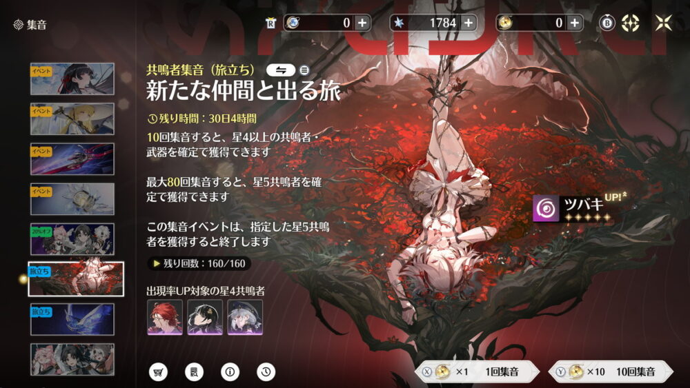 散華は無償配布もありますし、旅立ちガチャのピックアップ星4キャラなのでツバキを引く途中で凸素材も入手できる可能性が高いです。