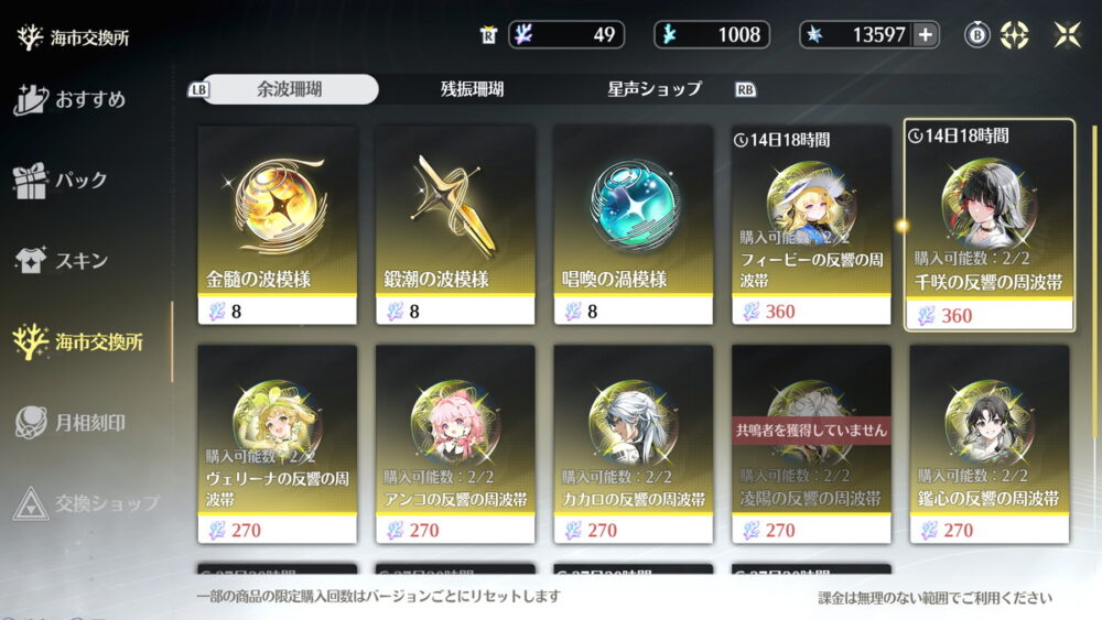 鳴潮は各バージョンで20個程度と恒常ガチャ石が結構たくさん手に入るので、消化するタイミングを間違えないように注意してください。