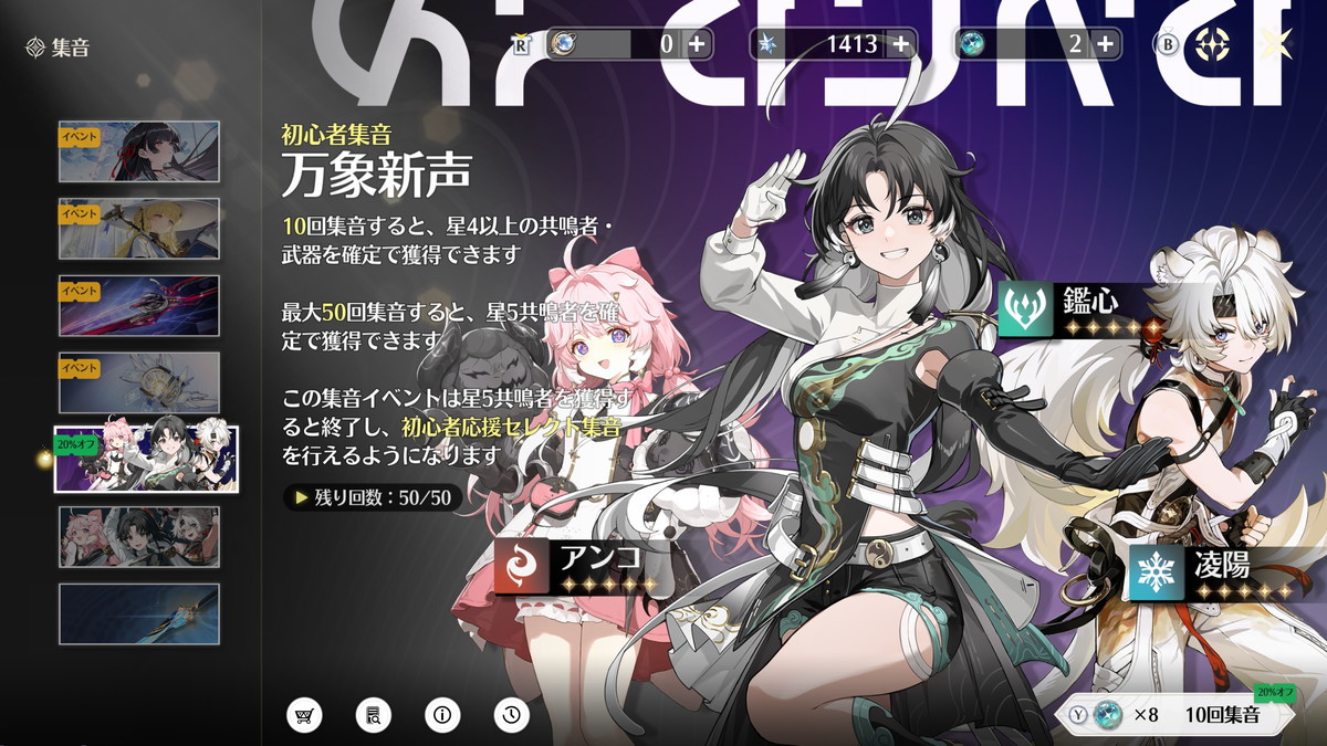 鳴潮のガチャは「集音」という名前です。
