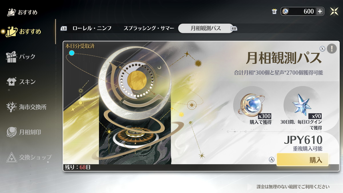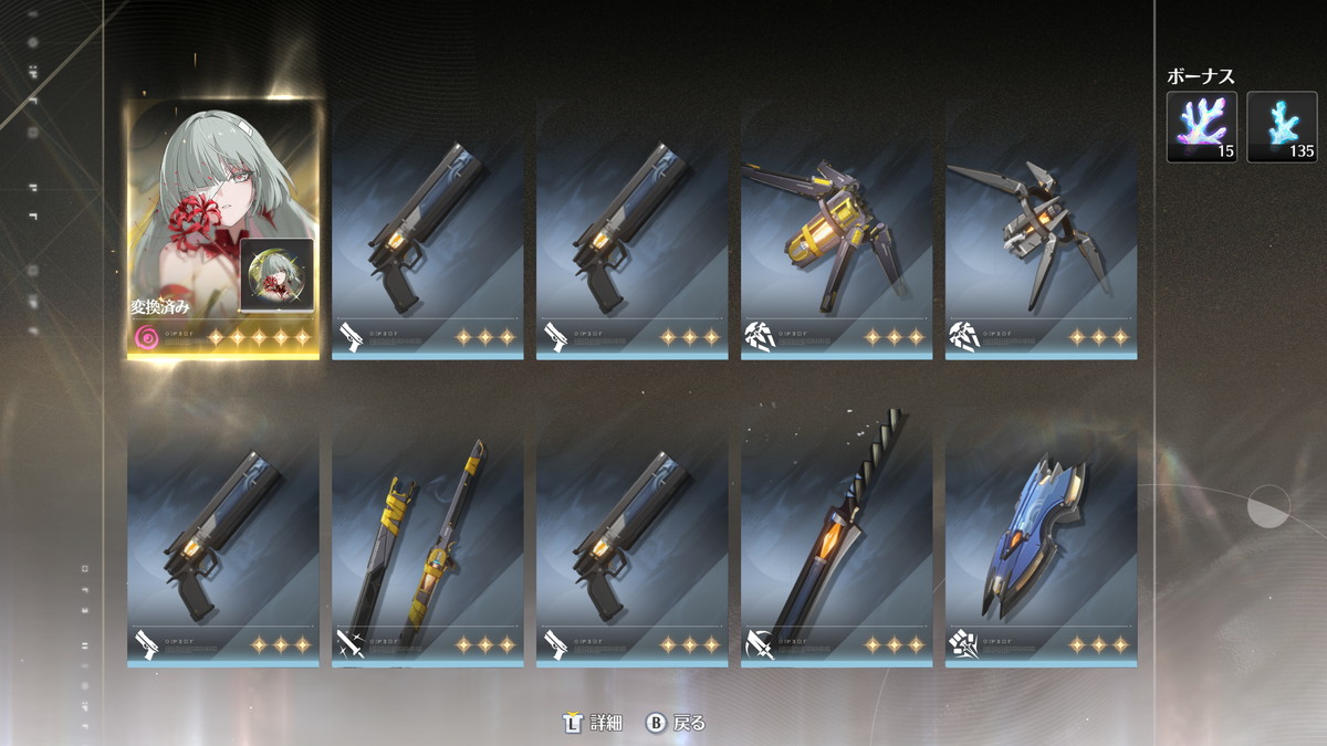 星5武器のほうはサブアカを始めた頃の課金なのでエンドコンテンツ攻略が1バージョン分くらい早まりましたが、現状、追い課金で入手したキャラと武器なしでも問題なく、高難度エンドコンテンツを攻略できる戦力は揃っています。