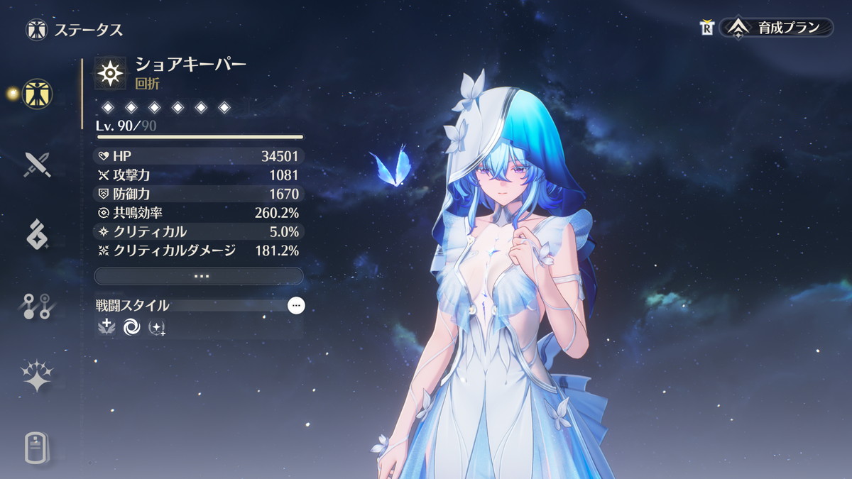 メインアタッカーやサブアタッカー(ヒーラー・バッファーも兼ねる)は最新キャラでも実装されていますが、汎用ヒーラーサポーターはそもそもの実装数が少ないのでショアキーパーは恒常星5のヴェリーナと並んで第一線で活躍しているキャラです。