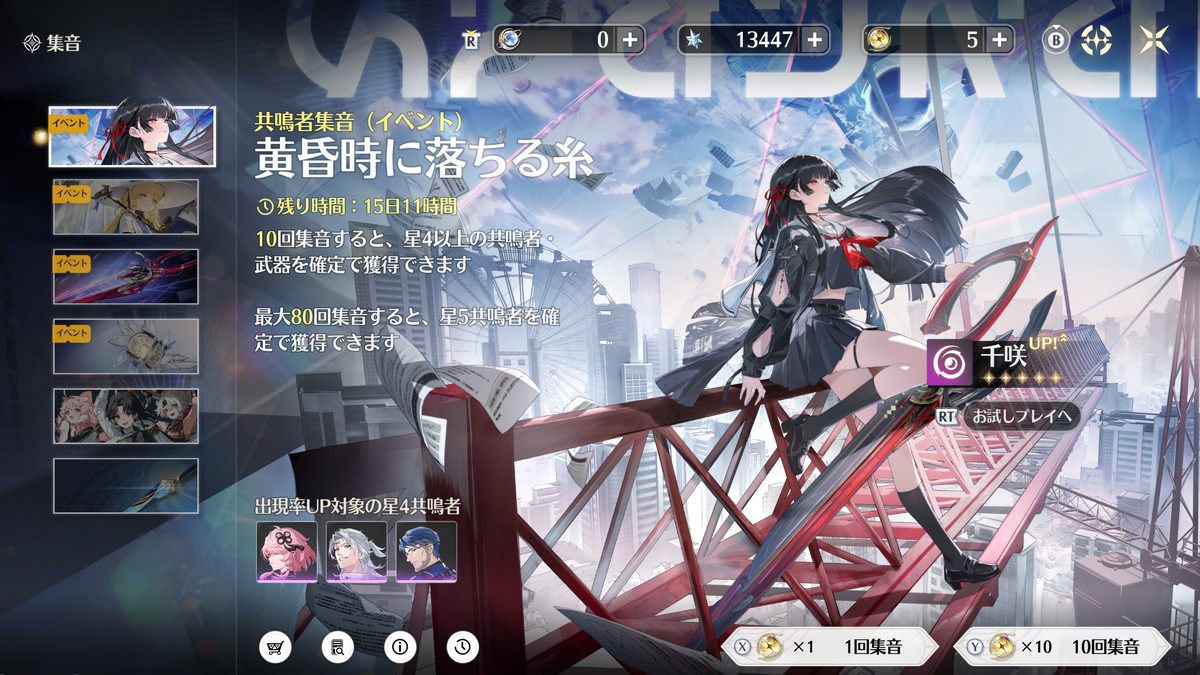 ソシャゲ一般に言えることですが鳴潮も星5キャラの入手性は悪いです。
