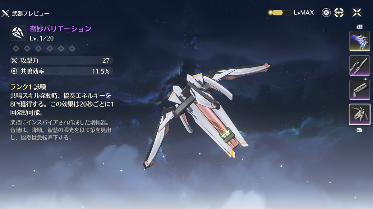 星4武器は基本的に限定星5武器や恒常星5武器の下位互換になることが多いですが、ヴェリーナ、白芷など増幅器ヒーラーサポーター用の武器として「奇妙バリエーション」だけは星5武器を押しのけて最適になります。